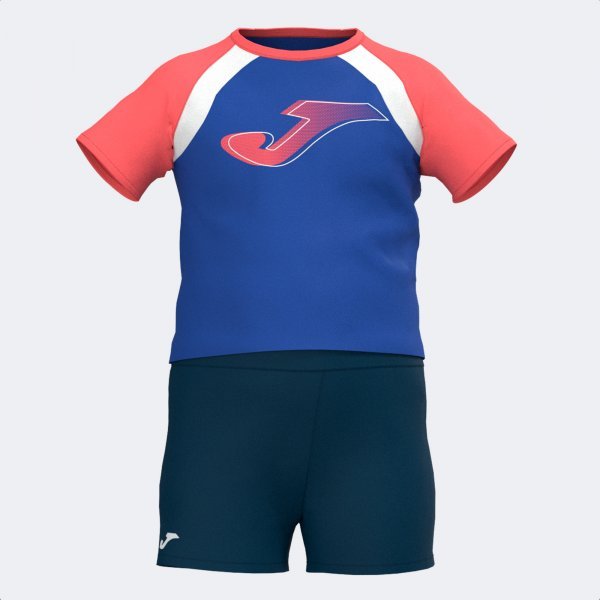'Boy\'s summer set, consisting of a t-shirt and shorts. This is a super comfortable set for summer, made using lightweight and comfortable material. It will allow children to move and play with complete freedom of movement. This summer set is formed by a short sleeve t-shirt and round neck. It features raglan sleeves to improve the freedom of movement of the arms. In addition, it comes with shorts with elasticated waist and adjustable drawstring to provide a better hold. They have two large zip-free pockets on the sides. Both parts have been made in a lightweight, comfortable material which withstands wear and tear. Its easy care increases the durability of this set. The logo on the t-shirt is included in a personalised print with an ombre effect and the bottoms feature another normal print.'